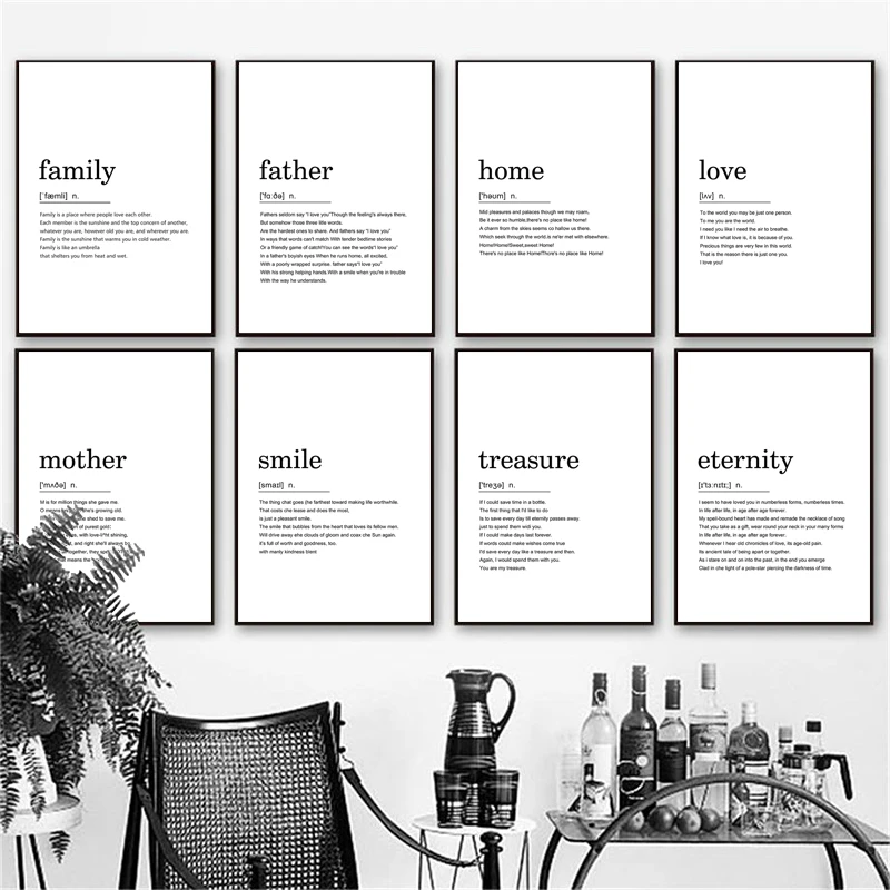 Love Family Home Definition Simple Quotes Wall Art Canvas Poster Minimalist Print Painting Picture Living Room Modern Decoration Painting Calligraphy Aliexpress